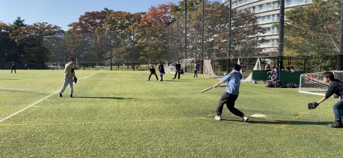 2025.10.31 理薬合同ソフトボール大会 こんにちは、M1の平田です。 先日、毎年恒例の理薬四研究室対抗のソフトボール大会が行われました。 野球経験者を多数擁する寺田研。もちろん目指すは優勝です。 寺田研のギータこと覇斗 結果は…… 惜しくも一回戦敗退でした。来年は優勝するぞー! 空いた時間にはフットサルも行い、みんな笑顔でボールを追いかけて走り回っていました。 塩基班の点取り屋冷水 みんな普段の研究生活から一時離れ、リフレッシュできたことでしょう。 寺田研ファイト―! 平田 Page Back Page Next